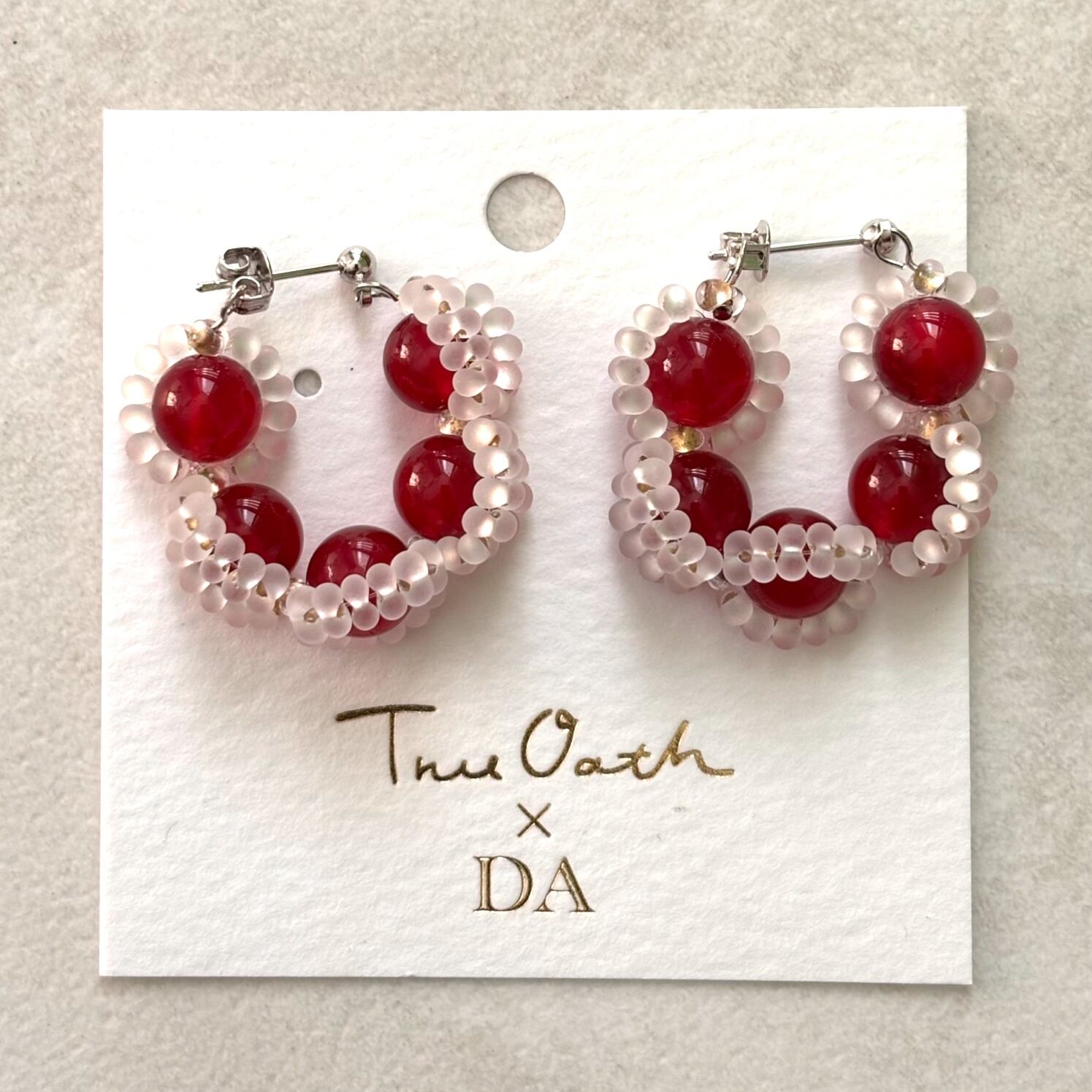 レッドメノウの美しさを引き立てガラスビーズを纏ったピアス