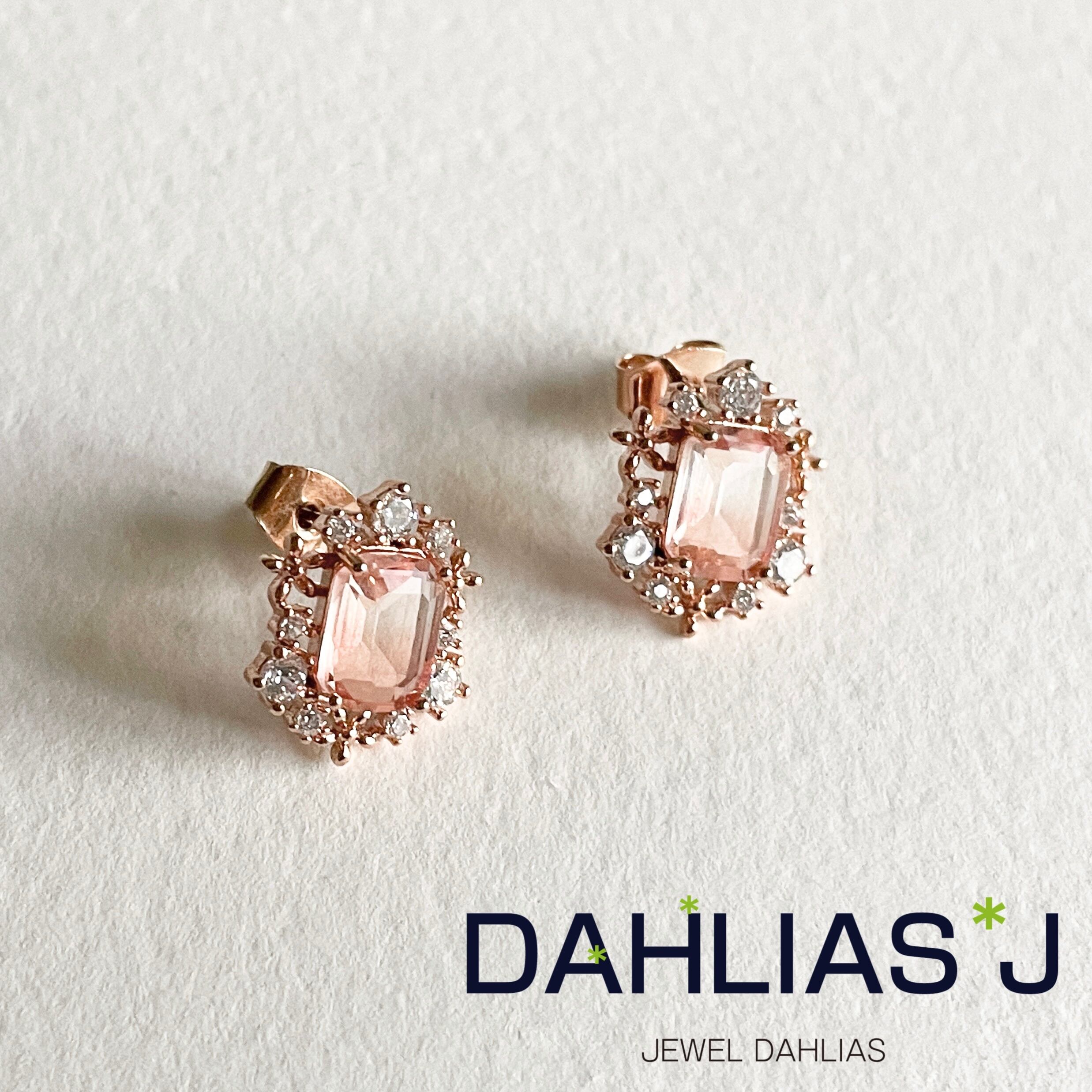 ピンクゴールド色のスタイリッシュなデザインピアスです。